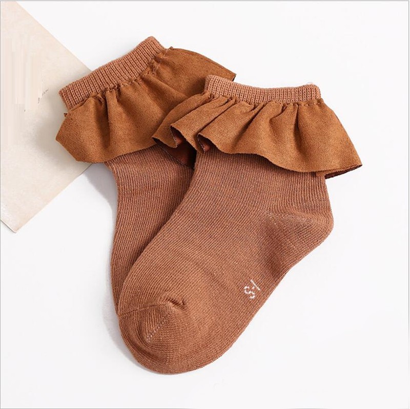 Disse smukke sokker er dekoreret med flæser ved anklerne.
