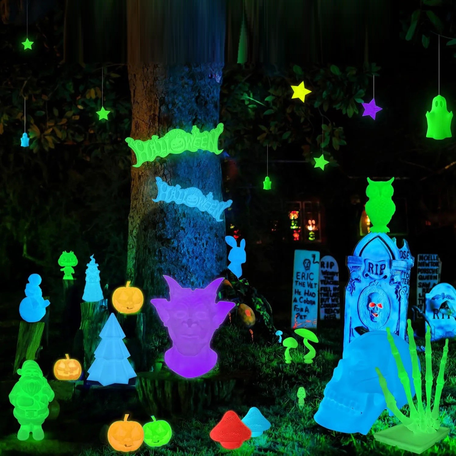 Lysende PLA: Allerede 20 minutter med stærkt sollys, UV-lys eller en lommelygte skaber en synlig lysende effekt, og efter 30 minutters belysning varer lyset endnu længere.