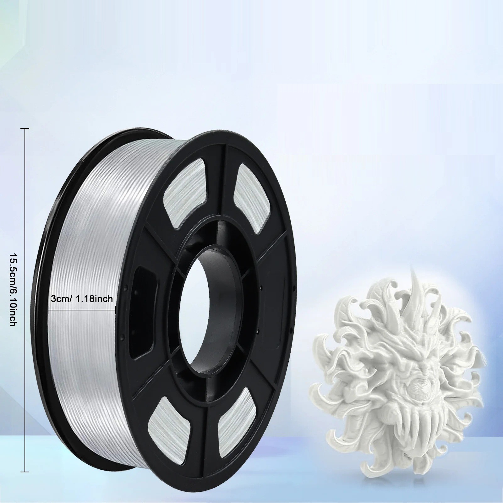 Ved printning tilbyder materialet meget god stabilitet og jævn lagaflejring. Dyse- og pladetemperaturen holdes inden for de sædvanlige grænser for PLA, så der er ikke behov for noget specielt udstyr. Filamentet krøller mindre, hæfter let på pladen, og den resulterende overflade af modellen er glat. Dette værdsættes ikke kun af begyndere, men også af avancerede skabere, der ønsker at opnå kvalitets- og detaljerede udskrifter i kombination med en effektiv lysbehandling.