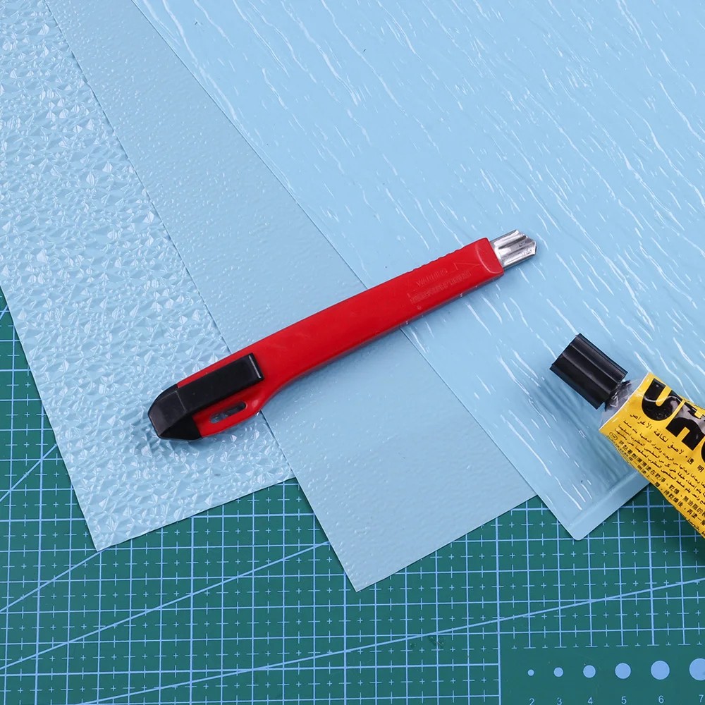 Forside Forside Alt til børn Skoleartikler Kunstnerartikler Plastplade vandsimulation 25 x 27,5 cm Blå gennemsigtig folie med tekstur af vandoverflade til diorama modelbyggeri flod sø og pool