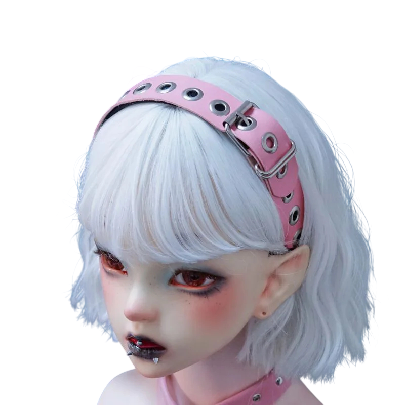 Markant punk hårbånd med spænde og metaløjer er et originalt modeaccessory for elskere af alternativ stil. Designet inspireret af et bælte skaber et unikt rock look, der straks fanger opmærksomheden og giver outfittet karakter. Den solide konstruktion sikrer stabilt hold i håret, mens det komfortable design muliggør langvarig brug uden ubehageligt pres. Metal elementerne giver hårbåndet et autentisk punk og gothic præg. Det supplerer perfekt streetwear, cosplay, festival og hverdagens outfits.
