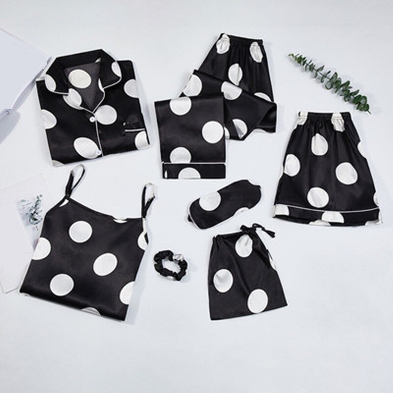Pakkens indhold: 1x top, 1x tanktop, 1x shorts, 1x bukser, 1x sovemaske, 1x pandebånd, 1x taske