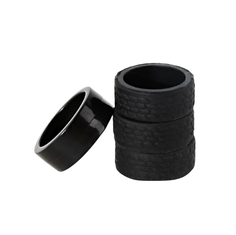 1× RC driftbil 1:43, 1× fjernbetjening, 1× USB-C opladningskabel, 4× dæk, 8× kegle, 1× brugsanvisning