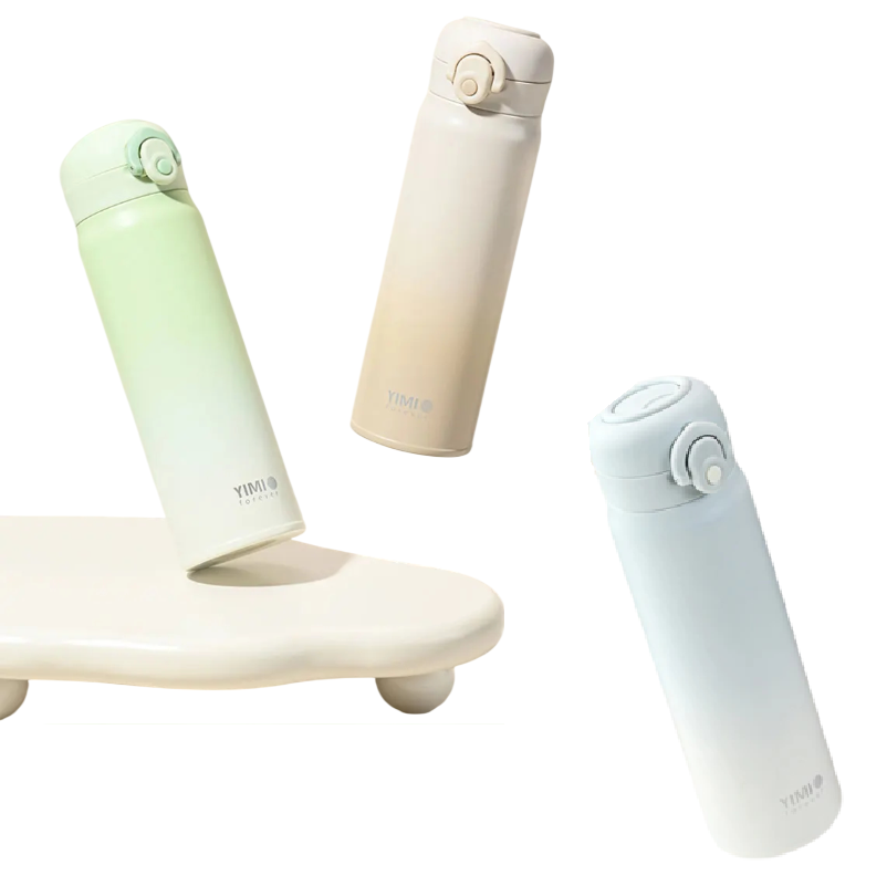 Rejse låsbar termokande med knaplåg 500 ml rustfrit stål gradient design bærbar drikkeflaske til arbejde og rejser