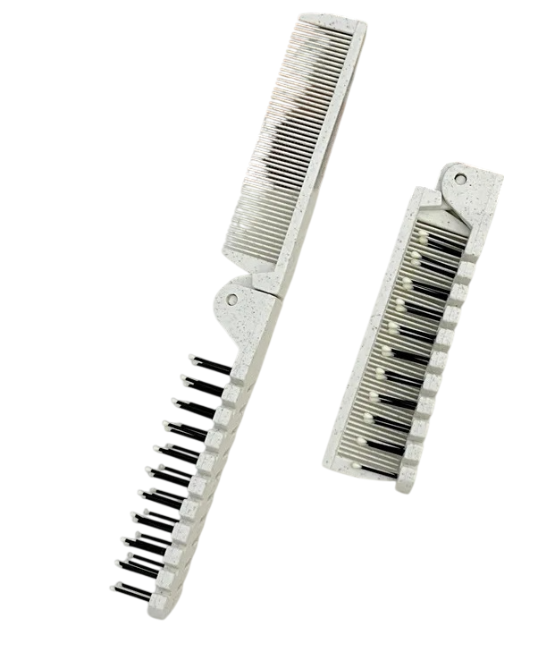 Praktisk sammenfoldelig kam 2i1 er den ideelle hjælper til daglig hårpleje derhjemme og på farten. Takket være de kompakte dimensioner passer den nemt i en taske, rygsæk eller lomme, så du altid kan have den ved hånden. Når den er udfoldet, tilbyder den en fuld længde til behagelig børstning og styling af frisuren. Den specielle konstruktion er designet til at være let, holdbar og velegnet til regelmæssig brug.