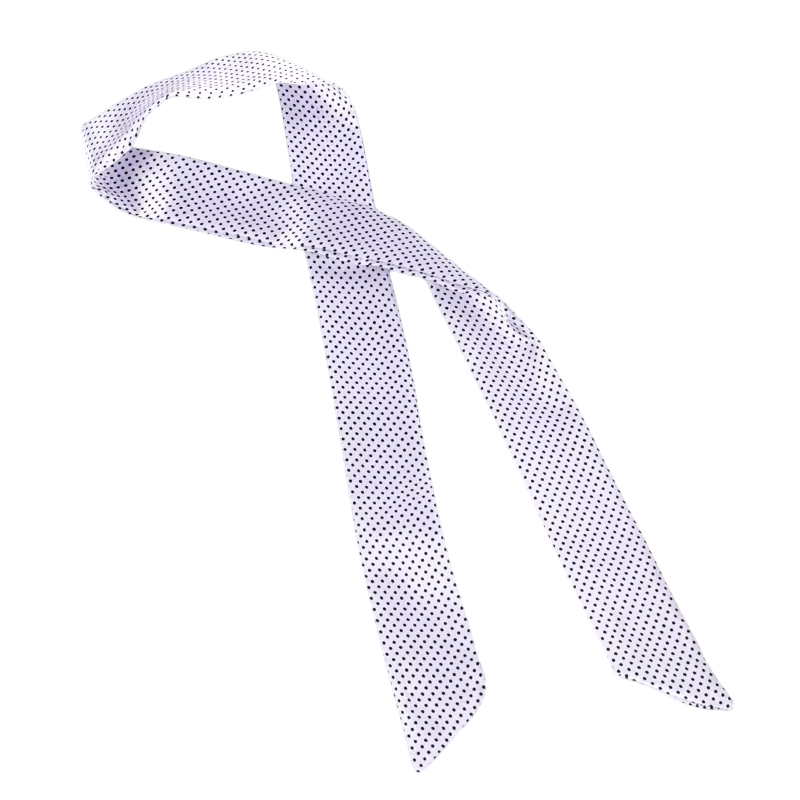 Dette damesjal er det perfekte valg for kvinder, der ønsker at tilføje en subtil, men iøjnefaldende detalje til deres udseende. Det prikkede mønster virker tidløst og er let at kombinere med forskellige stilarter af tøj. Takket være det smalle design virker det ikke voluminøst og bevarer en elegant silhuet af frisyren. Hvis du søger et alsidigt accessory, der kan forvandle dit outfit på et øjeblik, vil denne model ikke skuffe.