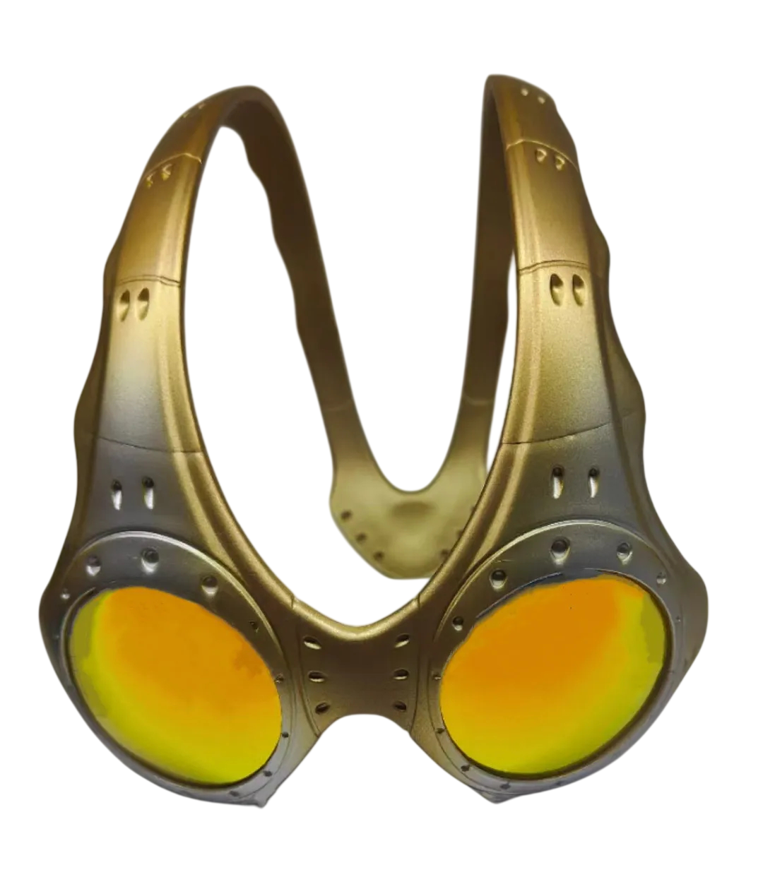 Modellen fremhæver elegante guld stel, der understreger den luksuriøse og markante karakter af dette tilbehør. Brillerne er velegnede til både mænd og kvinder og supplerer perfekt streetwear, ekstravagant outfit samt moderne sportsstil. Den ergonomiske form sikrer stabil placering på ansigtet og komfort under brug.