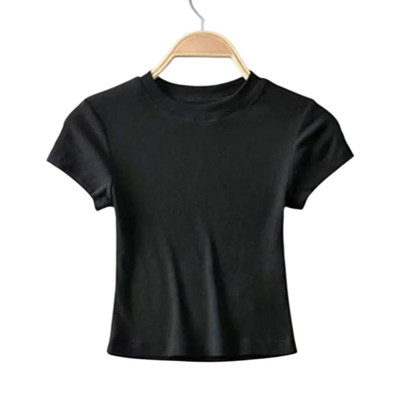 Ribbet kortærmet crop top til damer Elastisk top med rund hals Moderne slim fit Moderigtig ensfarvet t-shirt