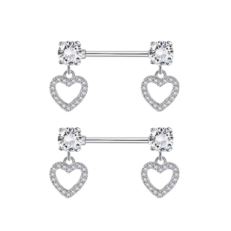 Romantisk sæt af brystvorte smykker med hjerte størrelse 1,6 mm Skinnende kropspiercing til kvinder og piger Delikat kvindelig motiv