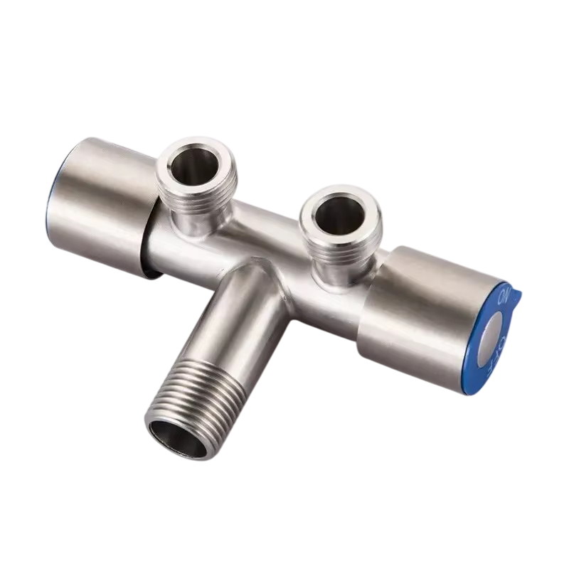 Holdbar rustfri dobbeltarmet vandhane med én indgang og to udgange. Ideel til badeværelser og toiletter, nem installation, lang levetid og moderne design. Fuld beskrivelse