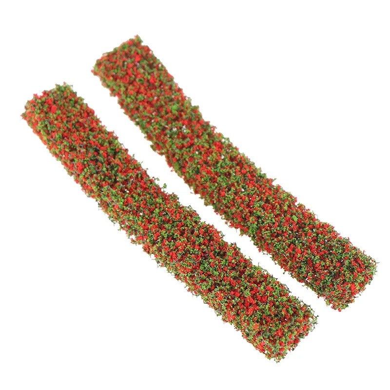 Sæt 2 stk Modelbuskebånd 10 x 1,5 x 1 cm Grøn Hæk Miniaturscenarier Diorama Modellering