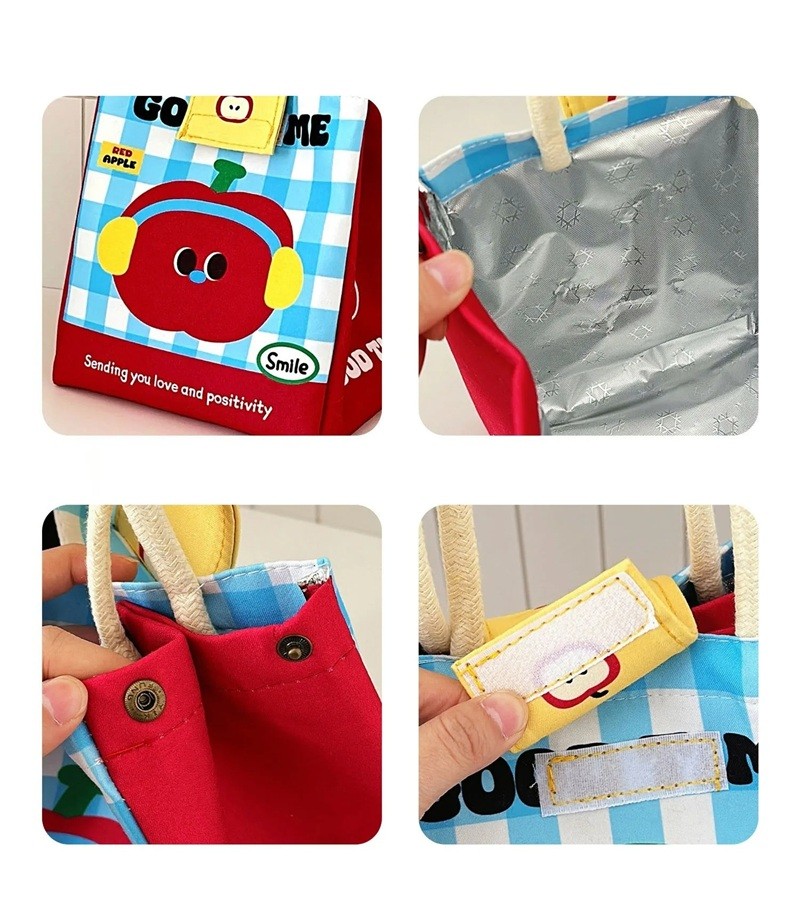 Sæt af 4 frokost termotaske æble kanin hamburger hund 19x22,5x17 cm Isolerende køletasker til mad med folie, lynlås og trykknapper