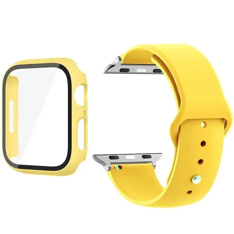 Sæt af hærdet glas, rammebeskytter og rem til Apple Watch 41 mm Series 9/8/7 – 9H beskyttelsesglas til skærmen, mat urkasse