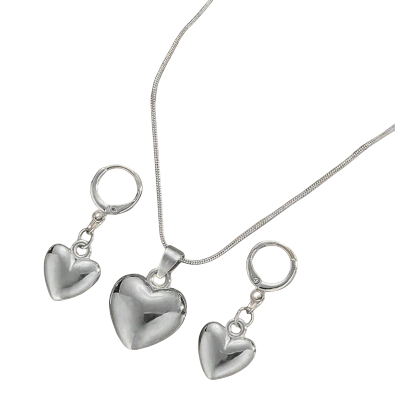 Elegant sæt smykker med hjerte motiv til kvinder. Skinnende udførelse, kædelængde 50 cm, ideel til daglig brug og som gave. Fuld beskrivelse
