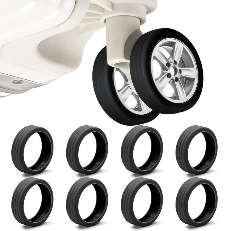 Forside Forside Tasker, rygsække og punge Kufferter og kuffertovertræk Sæt af silikonebeskyttere til hjul 5,3 x 1,5 cm 8 stk Beskyttende overtræk til møbelhjul Støjdæmpende dæk til hjul til beskyttelse af gulvet