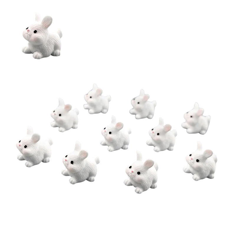Sæt med 10 stk Mini figurine hvid kanin 0,9 × 1,6 cm Harpiks dekoration til mini have, blomsterkrukker eller akvarium