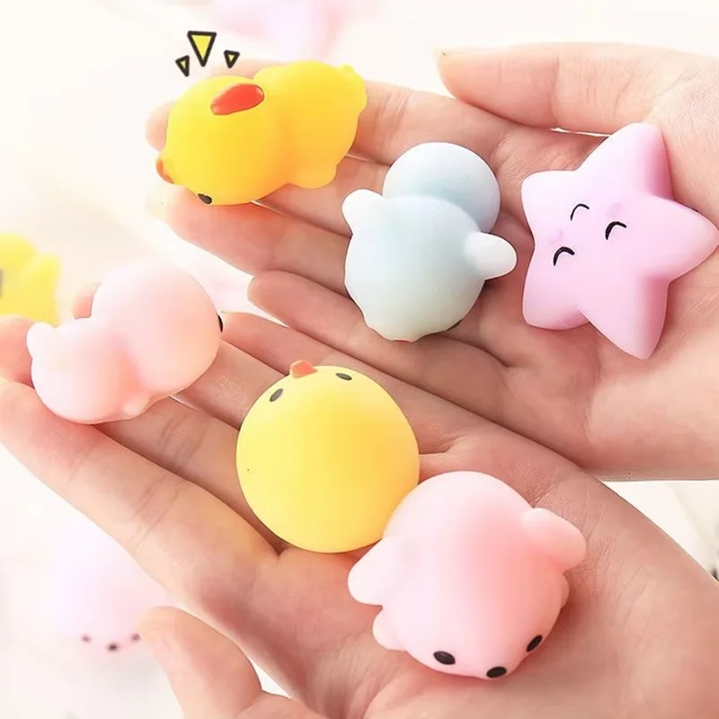 Dette sæt 18 søde klemmedyr er ideelt til at lindre spændinger og forbedre humøret. De bløde figurer ligger godt i hånden og kan klemmes gentagne gange til sjov og afslapning.