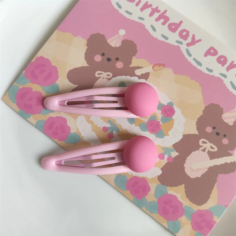 Sæt med 2 stk hårnåle Rosa kugler Mat overflade Legering BB side hårtilbehør