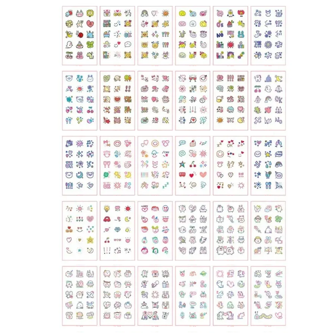 Sæt med 30 stk midlertidige tatoveringer 5,7 x 9,7 cm Farverige mini motiver med smileyer, symboler, dyr og søde ikoner