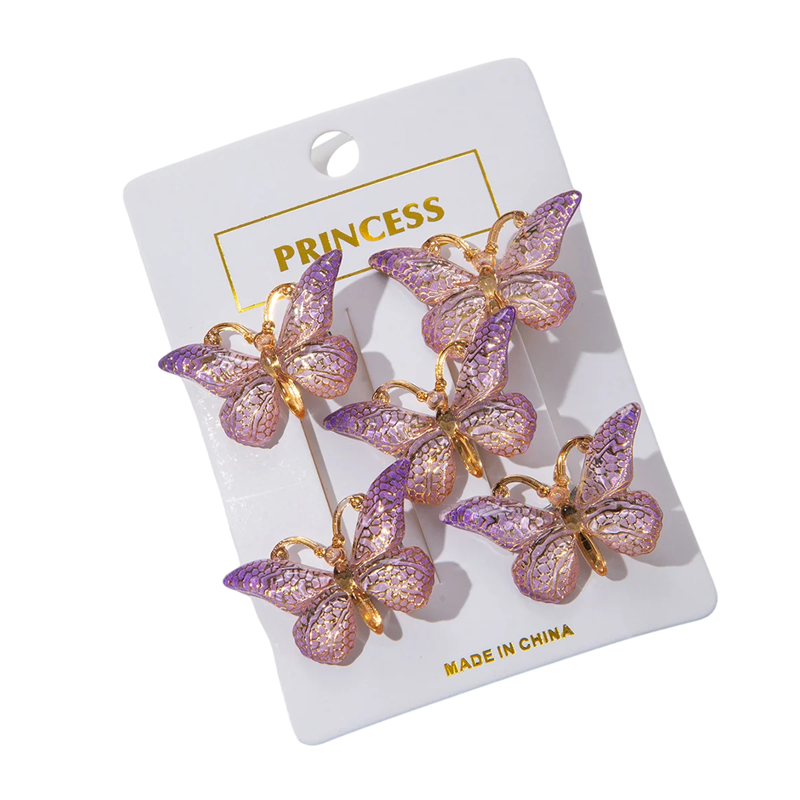 Sæt med 5 stk. sommerfuglespænder til hår 4 × 2,5 cm Farveovergang Plastiske søde hårtilbehør