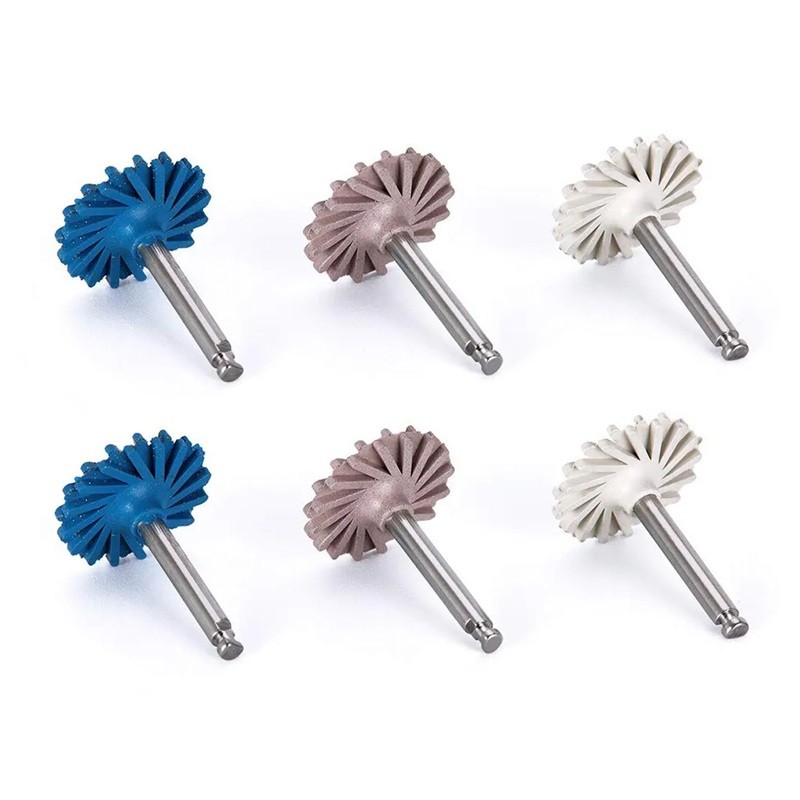 Forside Forside Sundhed og skønhed Tandpleje Sæt med 6 tandpoleringsværktøjer i gummi til kompositharpikser Diamant RA skiver spiralformede fleksible værktøjer 21 x 14 mm