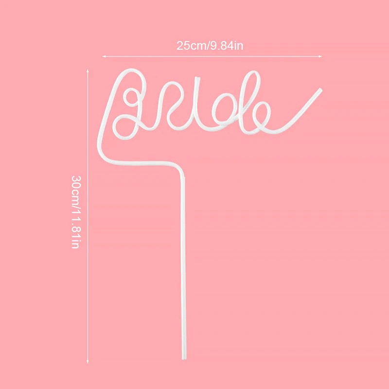 • 1× sugerør med teksten Bride (Bruden)
