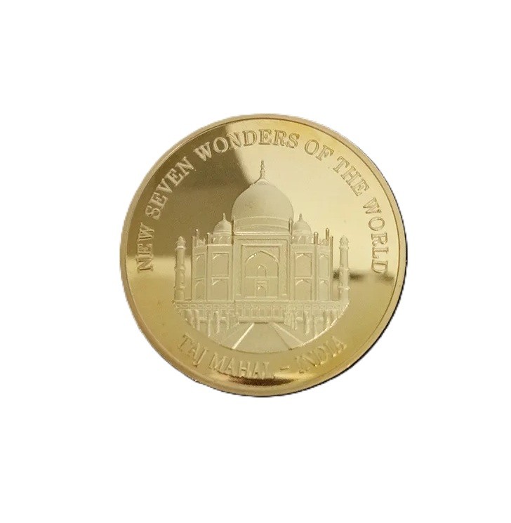 Samlermynt 4 cm forgyldt Syv vidundere Taj Mahal Indien minde dekorativ mynt til samlere