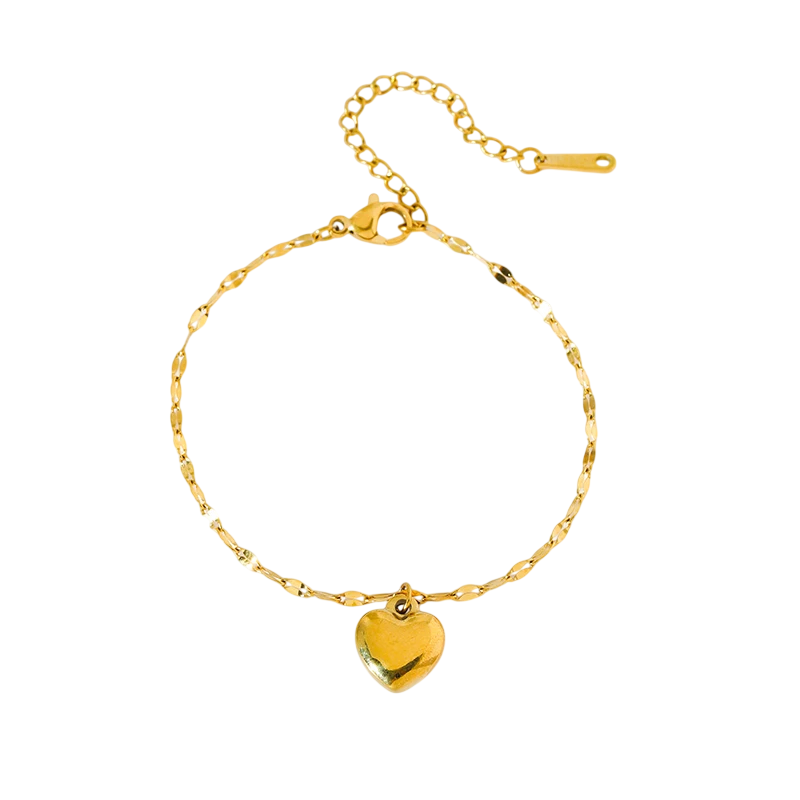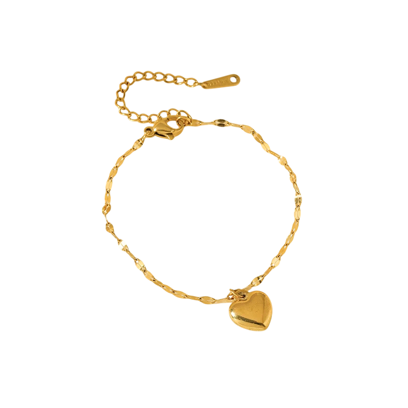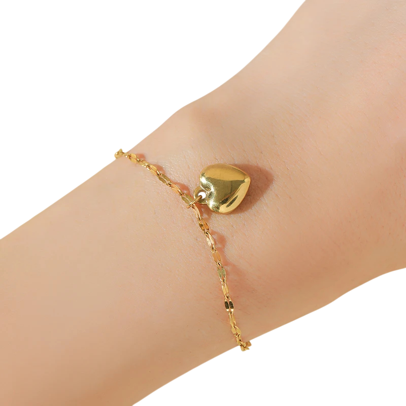 Minimalistisk vandtæt armbånd i stål 316 med hjerte motiv, ideelt til bryllup, jubilæum og fødselsdage som en delikat gave. Fuld beskrivelse