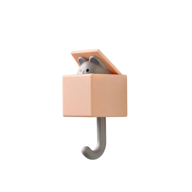 Denne originale krog med selvklæbende bagside kombinerer funktionalitet med legende design. Når du hænger et håndklæde, en taske eller en anden genstand op, åbner låget sig, og der kigger et sødt dyr frem. Velegnet til brug i badeværelset, køkkenet, børneværelset eller på dørene.