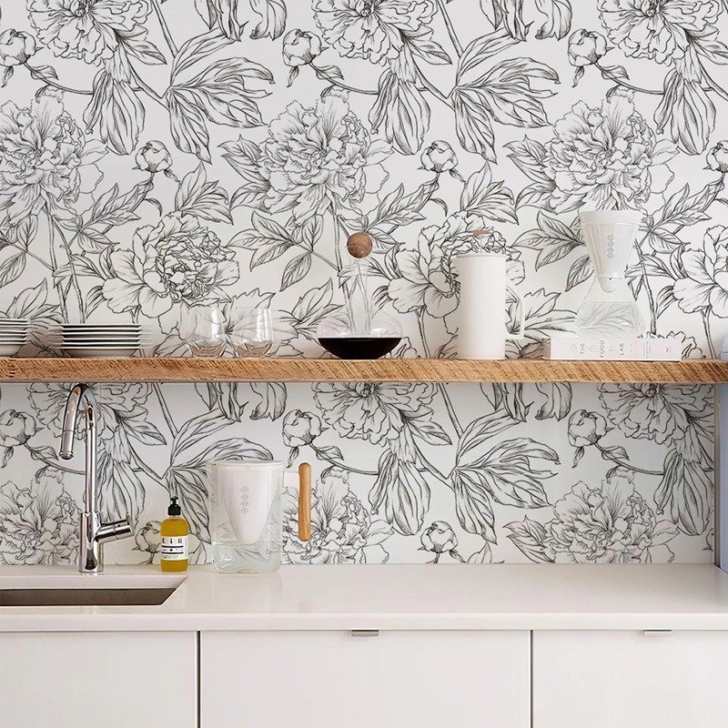 Vandafvisende PVC-tapet med blomsterdesign 44 × 300 cm er ideelt til moderne renovering af vægge i køkken, badeværelse og stue. Fuld beskrivelse