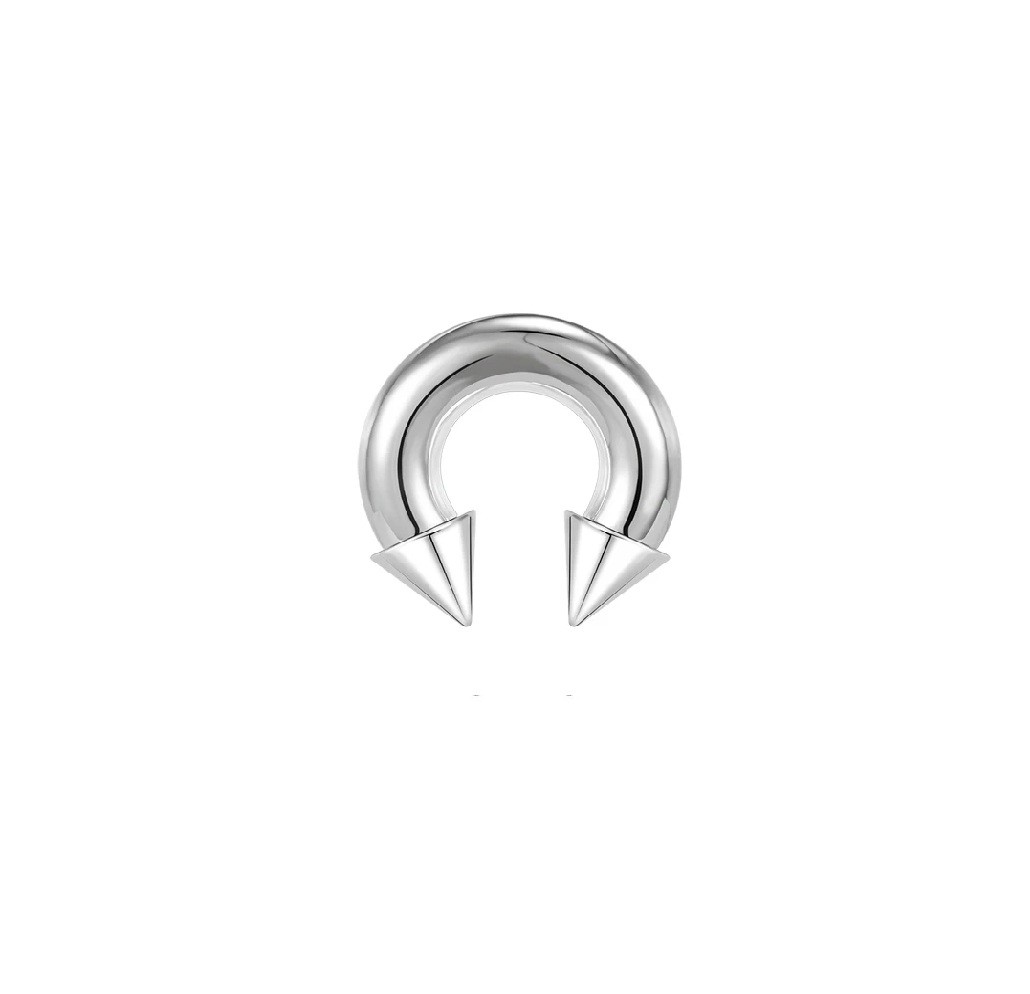 Dette septum piercing er designet til brugere, der foretrækker markante dimensioner, solid konstruktion og klart læseligt design. Hesteskoformen afsluttet med spidser er blandt de velkendte klassikere inden for næsepiercinger og fremstår selvsikker og dominerende i en mere massiv udførelse. Dimensionerne 10 x 16 x 14 mm sikrer et robust udseende, der er godt synligt og samtidig velafbalanceret. Rustfrit stål giver smykket et rent, ensartet udseende og en glat overflade. Denne model er velegnet til dem, der ønsker, at septum piercing skal være et markant element i deres stil.