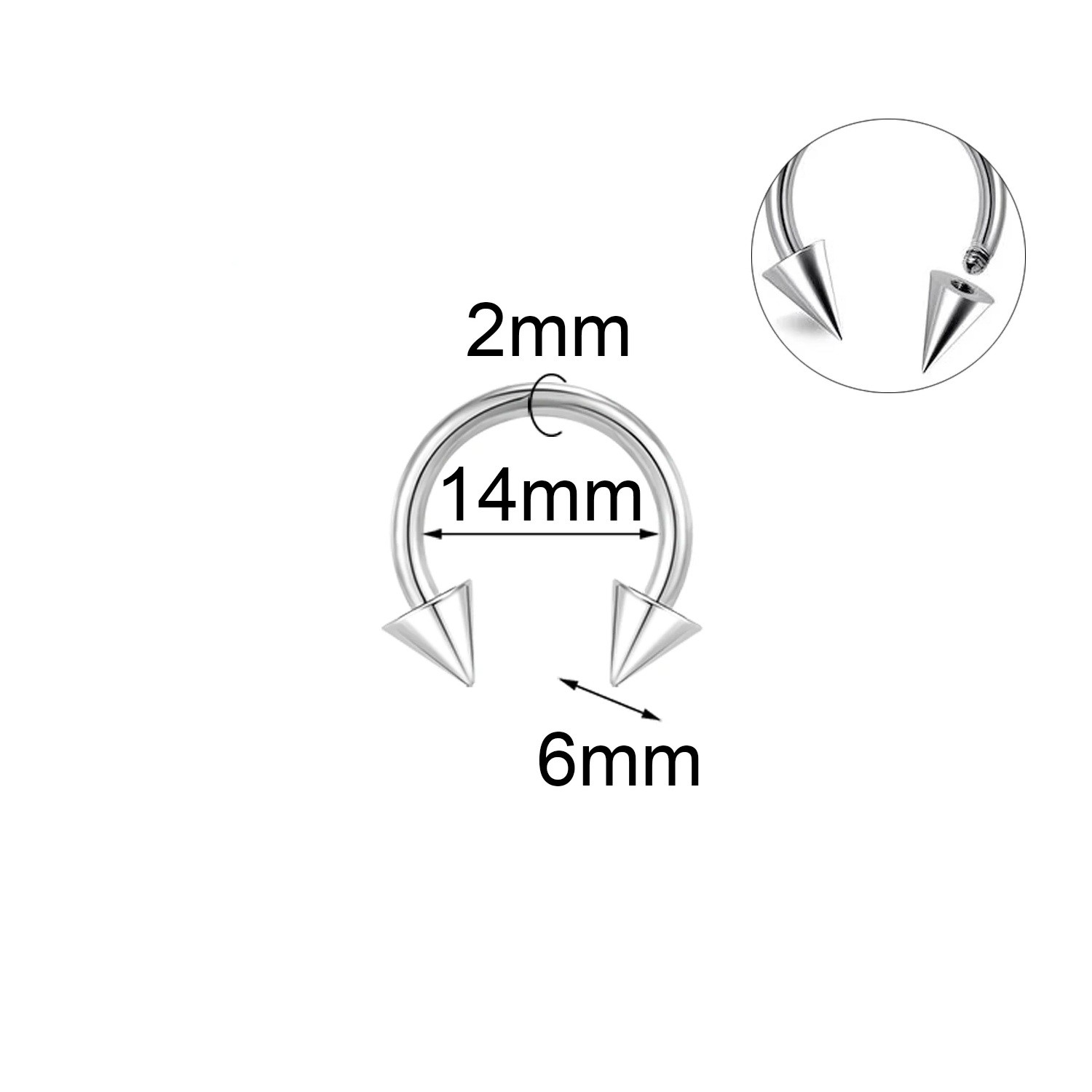 Septum piercing hestesko med spidser 2 x 14 x 6 mm I rustfrit stål Klassisk sølv smykke til næse og universel brug