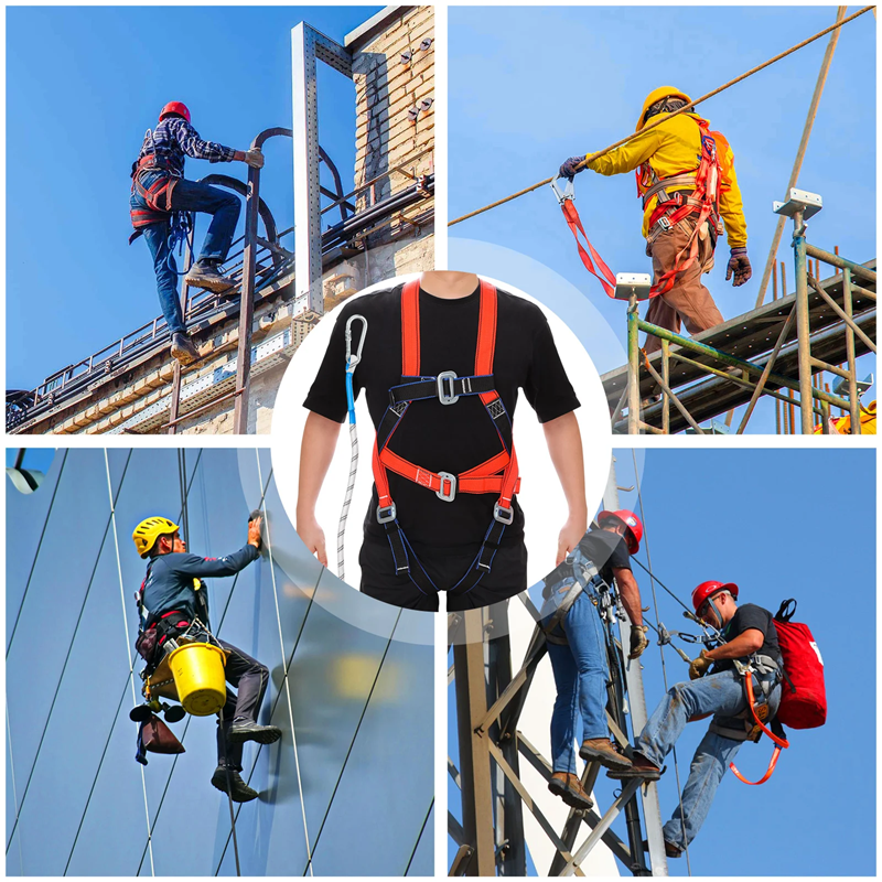 Forside Forside Sport og friluftsliv Camping og friluftsliv Taktisk udstyr Sikkerhedsselen til arbejde i højder med 2 m reb Karabinhage Beskyttelsesrem Belastning 2200 kg Polypropylen Stållegeme