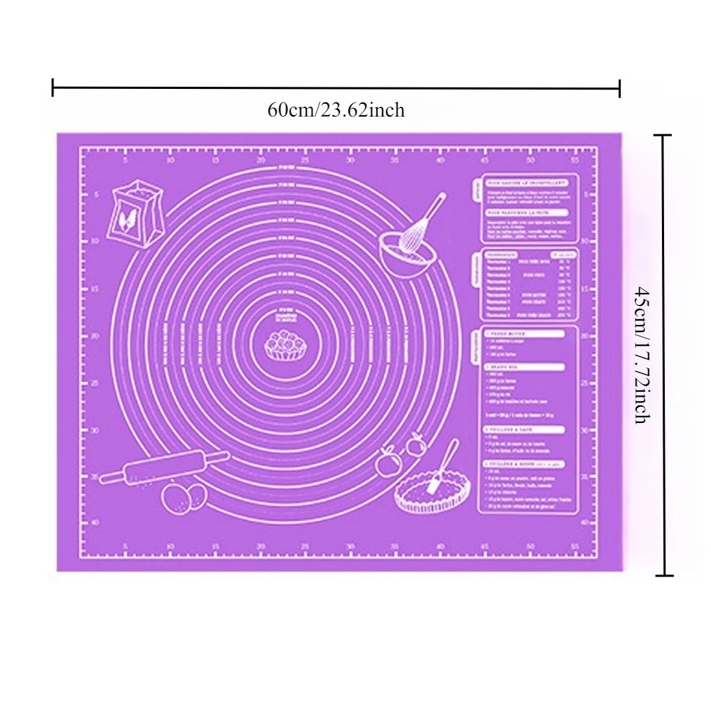 Silikon bageunderlag 60 x 45 cm Fødevareplast underlag med målebæger Non-stick arbejdsflade til bagning og dej