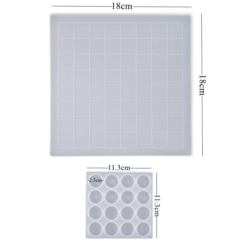 Forside Forside Hjem og husholdning Dekoration og boligtilbehør Øvrige dekorationer og tilbehør Silikonform til fremstilling af skakbræt 18 x 18 cm og forme til skakfigurer Epoxy Har håndlavet