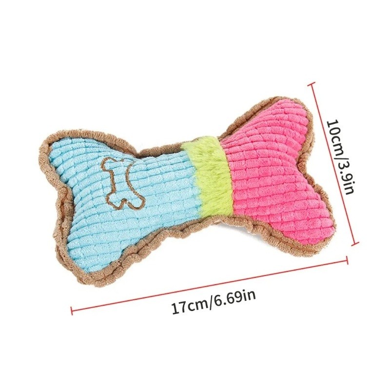 Forside Forside Kæledyrstilbehør Hundetilbehør Hundelegetøj Skridende plyse legetøj til hund farvet knogle 17 x 10 cm holdbart tyggelegetøj af polyester og bomuld til små og mellemstore hunde