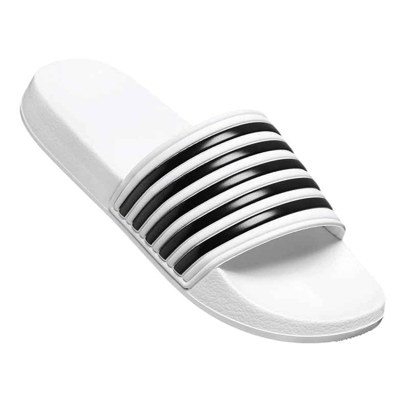 Lette og behagelige unisex hjemmesko med striber. Skridsikker sål, ideel til badeværelset, hjemmet og sommeren. Nem at tage på. Fuld beskrivelse