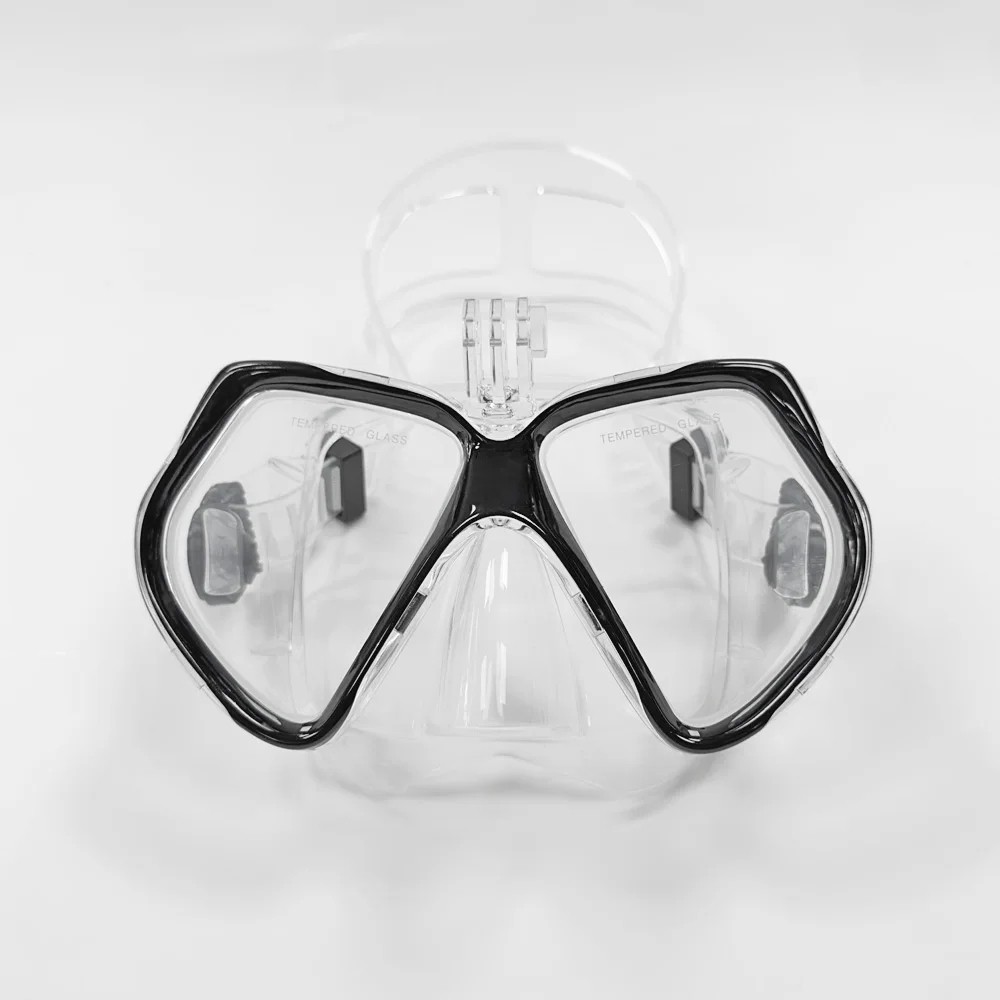 Snorkelbriller med holder til sportskamera 16,6 x 9,3 cm Dykkermaske silikontætning hærdet glas Antifog behandling