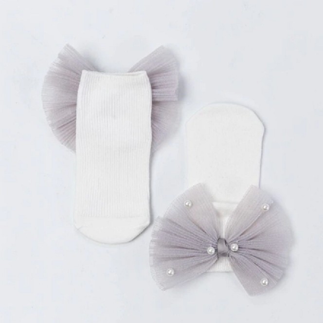 Sokker med en sød sløjfe dekoreret med perler.