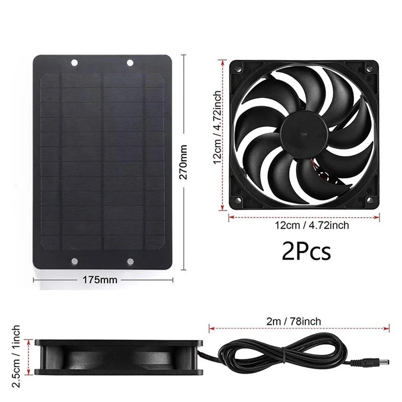 • Indhold af pakken: 1× solcelleventilator, solpanel, tilslutningskabler