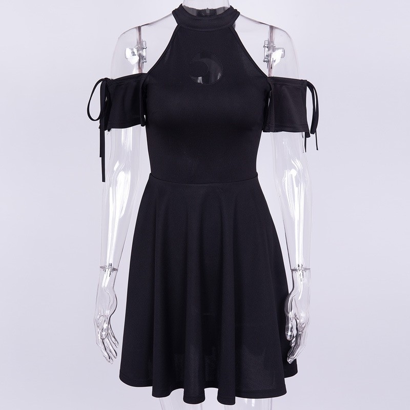 Sort minikjole til kvinder i ekstravagant gotisk stil.