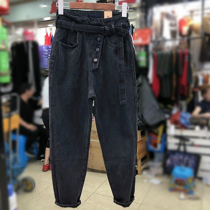 Sorte damejeans med bælte
