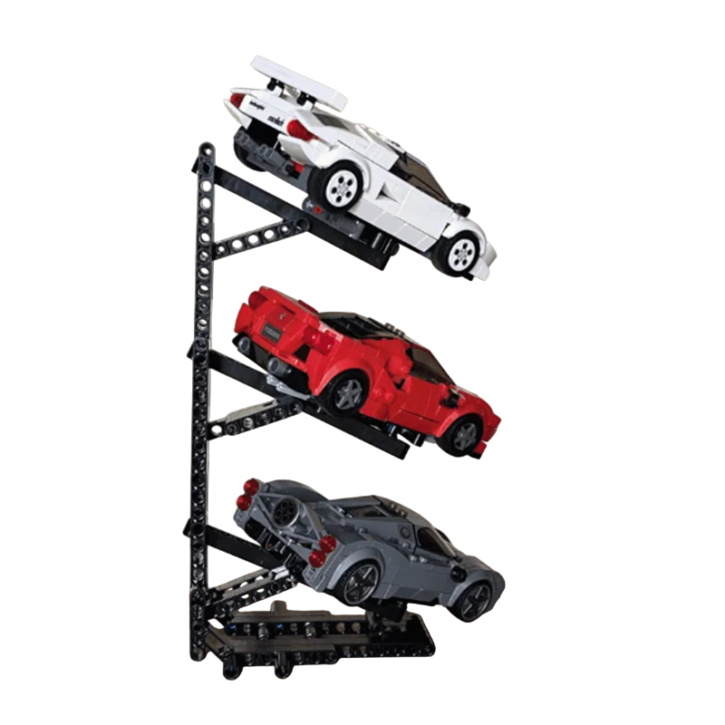Stativ til 169-delt racerbil. Kompatibel med Speed Champions. 3 stik til 3 biler. Opbevarings- og præsentationsstativ til modeller.