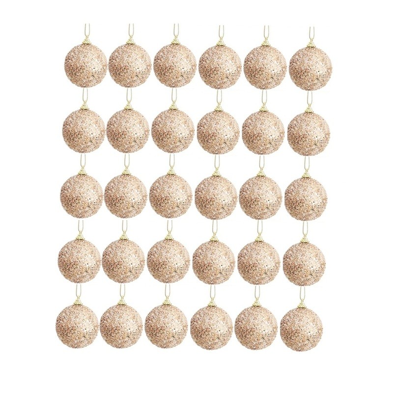 Stor sæt med 30 stk. glitrende julekugler 6 cm champagneguld hængende pynt til juletræ og nytårsfester