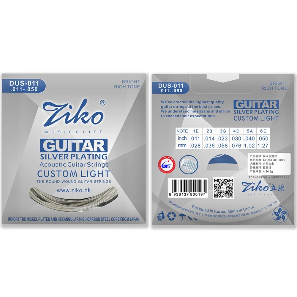 Strenge DUS-011 repræsenterer høj kvalitet og præcist håndværk designet til akustiske guitarer af alle typer. De er fremstillet af kulstofstål med sekskantet kerne, som giver fremragende stabilitet i tuning, fleksibilitet og lang levetid. Overfladen er behandlet med forkrommet finish (silver plating), som øger korrosionsbestandigheden, forlænger holdbarheden og giver ren, klar og afbalanceret lyd.