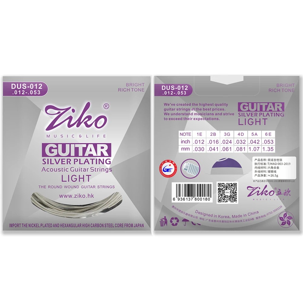 Strenge til akustisk guitar DUS-012 Kulstofstål med sekskantet kerne Forkrommet overflade Klar tone Lang levetid Stabil tuning