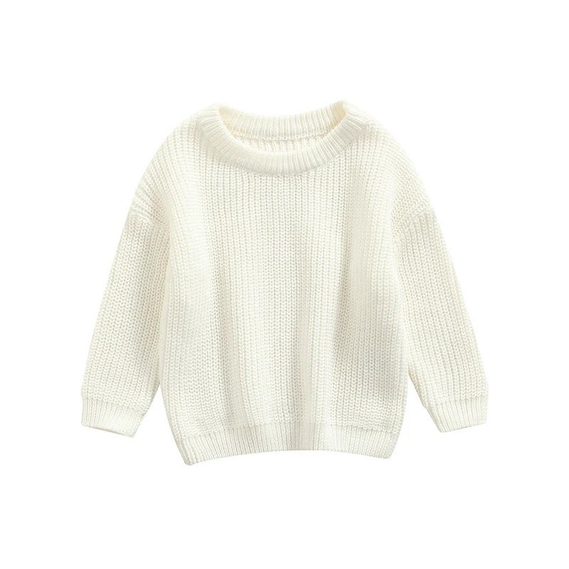 Strikket børnesweater i bomuld med lange ærmer til nyfødte Efterårs- og vinterløs afslappet top Ensfarvet tøj til piger og drenge