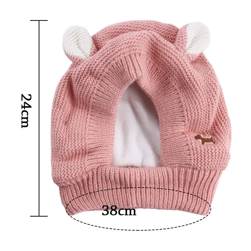 Forside Forside Kæledyrstilbehør Hundetilbehør Hundetøj Strikket hundehue 24 cm højde 38 cm halsomkreds Varm beskyttende hætte til ører til små og mellemstore hunde Vintertilbehør mod vind