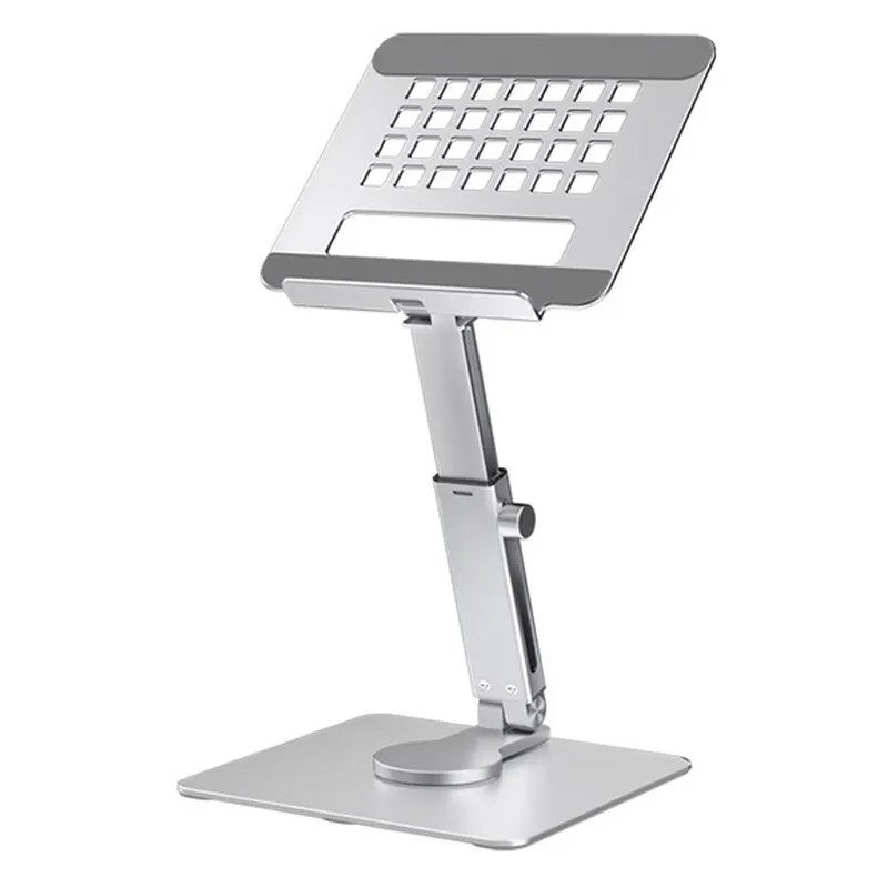 Den justerbare konstruktion giver mulighed for at vælge den præcise højde og hældning, så arbejdet med tabletten bliver så komfortabelt som muligt. Den roterende base sikrer hurtig ændring af position uden at skulle flytte tabletten konstant. Stativet er velegnet til skrivebordet, køkkenet, konferencerummet og natbordet. Takket være det kvalitetsmateriale er det modstandsdygtigt over for langvarig brug og bevarer sin styrke selv ved hyppig håndtering. Aluminiumlegeringen giver stativet lang levetid og et elegant udseende, der nemt passer ind i enhver indretning.