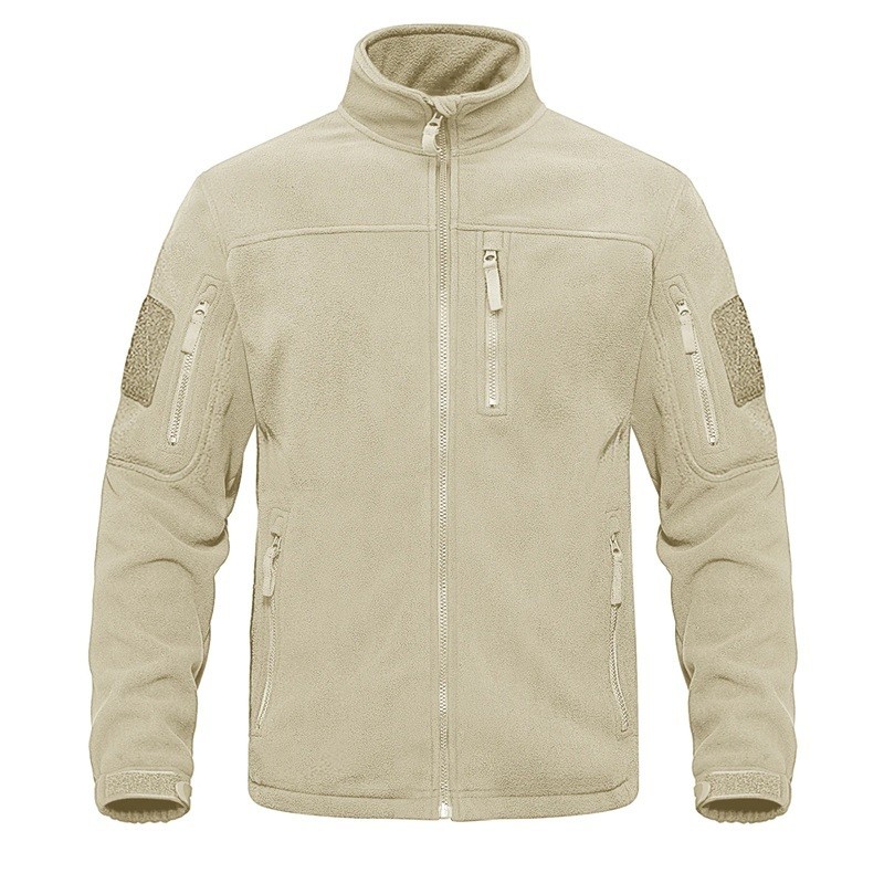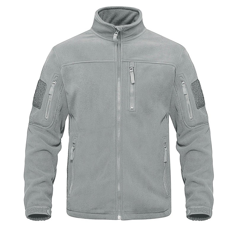 Taktisk udendørs fleecejakke til mænd med flere lynlåslommer, sportsjakke med høj krave, vindtæt vandretøj